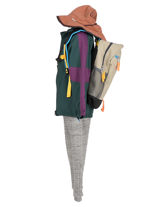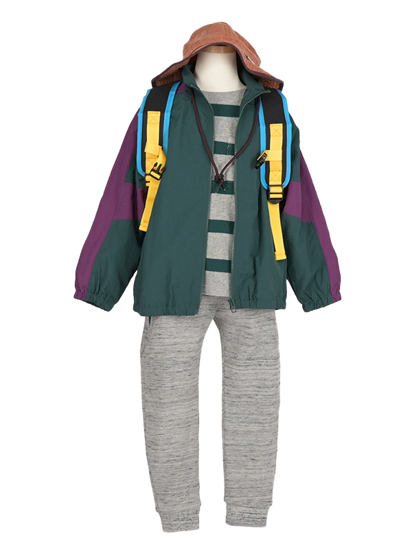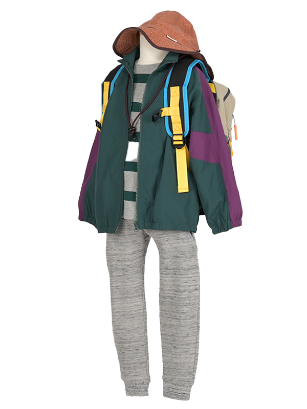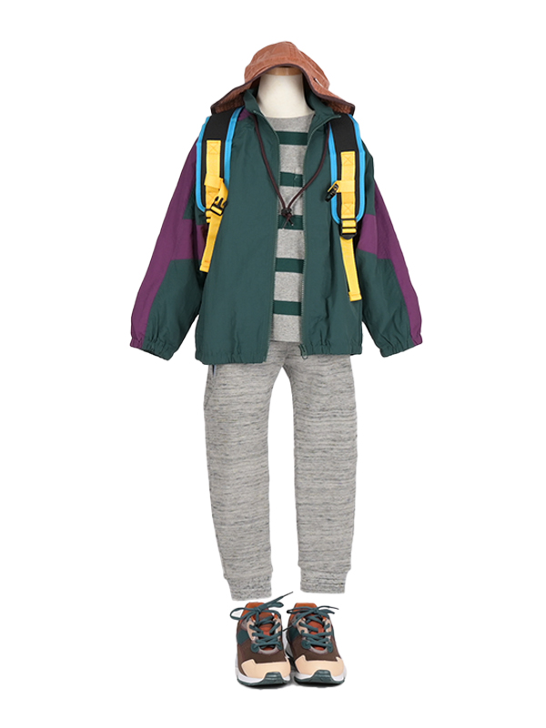 男の子用アウトドアセットのコーディネート例です。ブルゾン、カットソー、パンツ、スニーカー、リュック、帽子までをご用意しております。撮影用の衣装は写真の商品だけでは無く小物やオプション品などバリエーション豊富に各種サイズも取り揃えておりますので、お気軽にお問い合わせください。