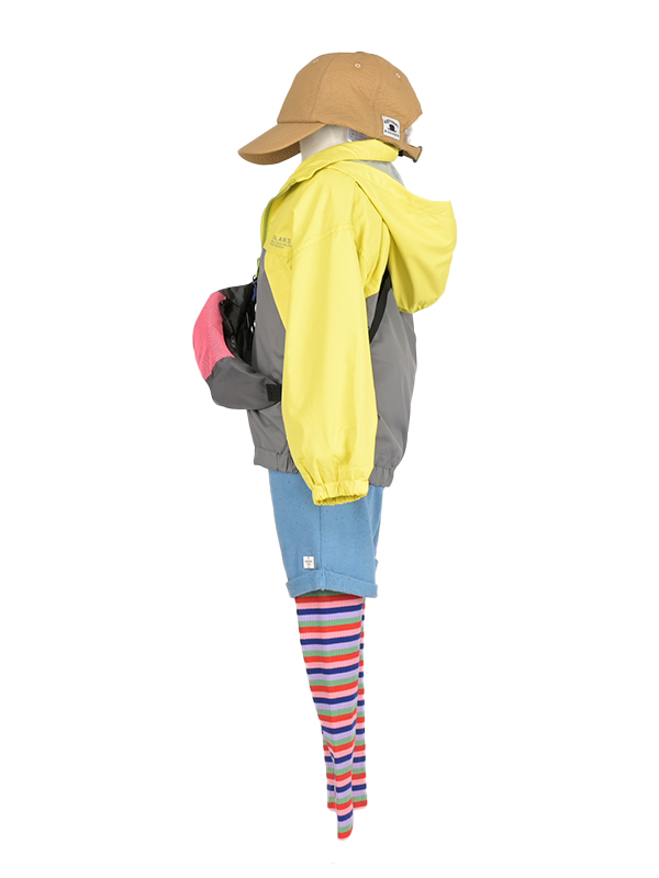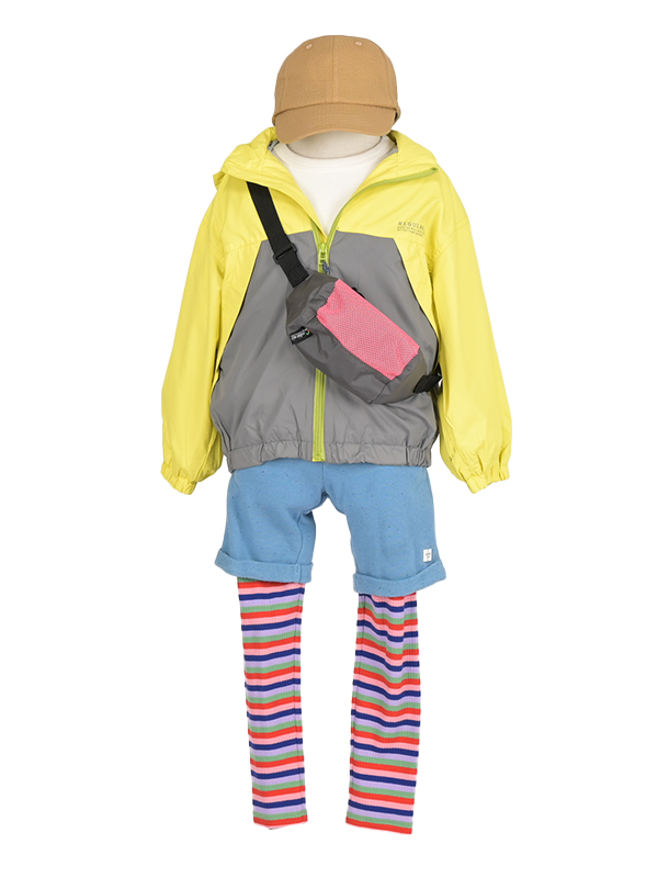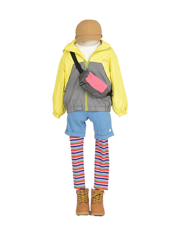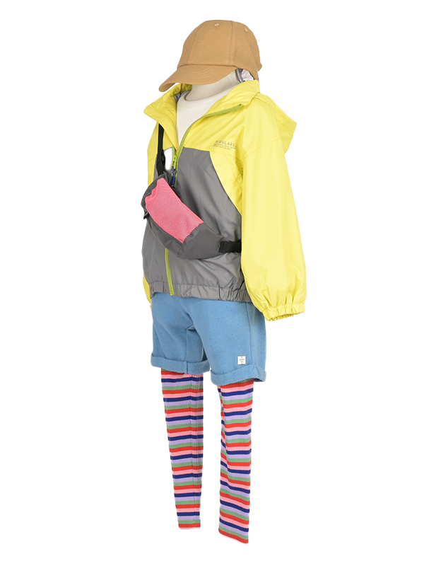 女の子用アウトドアセットのコーディネート例です。ブルゾン、カットソー、ショートパンツ、レギンス、ブーツ、バッグ、帽子までをご用意しております。撮影用の衣装は写真の商品だけでは無く小物やオプション品などバリエーション豊富に各種サイズも取り揃えておりますので、お気軽にお問い合わせください。