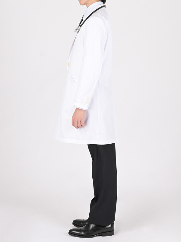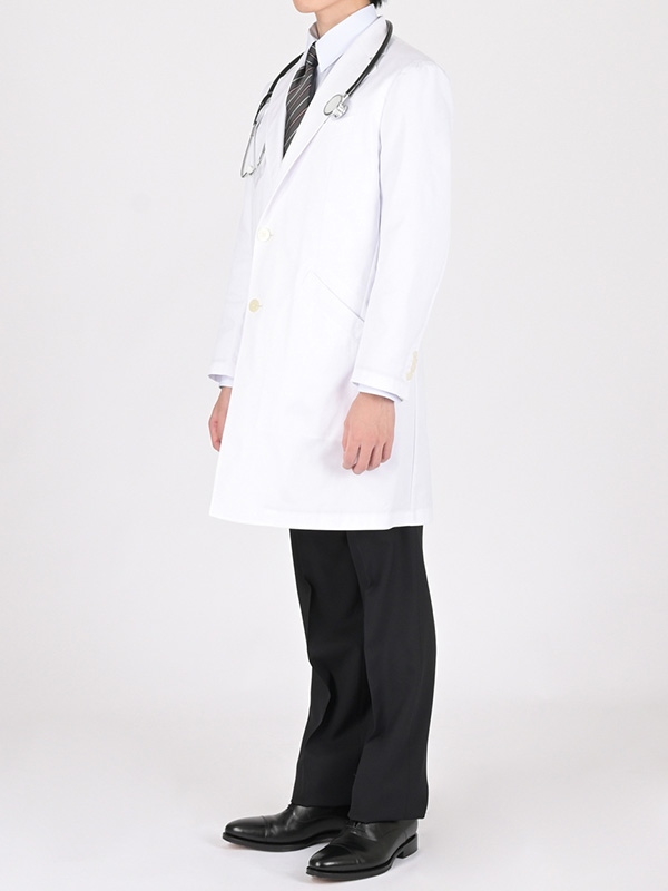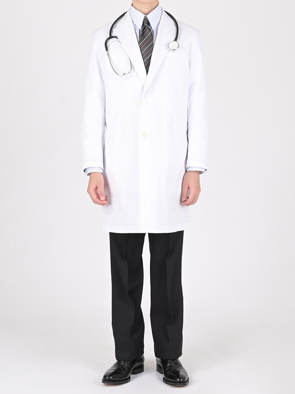 女性のお医者さんの白衣とパンツスーツのコーディネート例です。